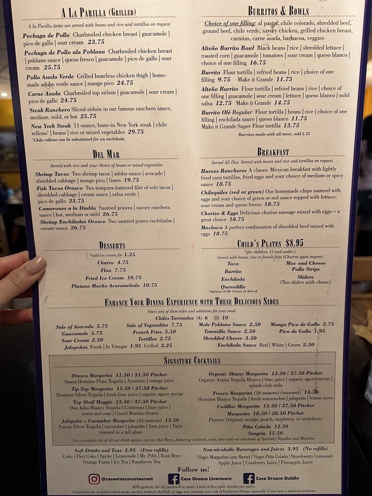 Casa Orozco - Dublin Menu (Update 2025)