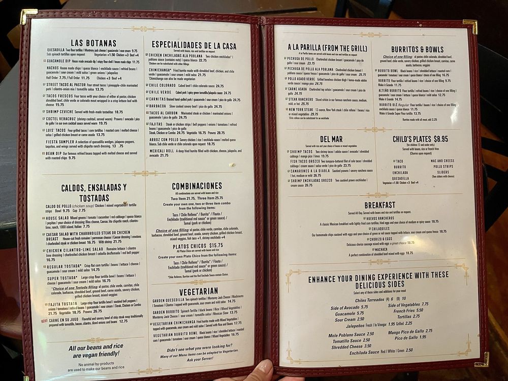 Flour Tortilla | Refried Beans | Rice | Choice of One Filling | Guacamole | Sour Cream | Lettuce | Queso Blanco | Mild Salsa Roja